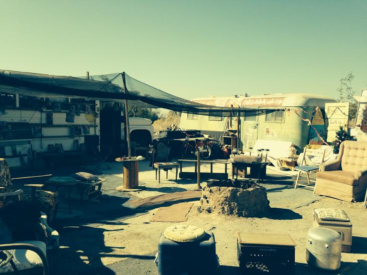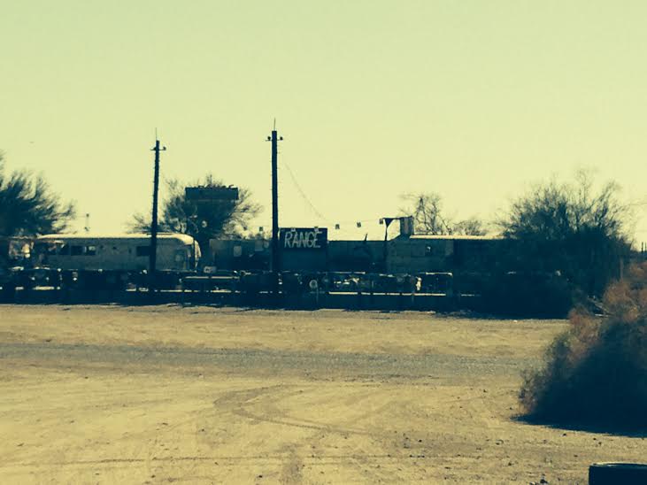 We met Sandi, a local artist, who paints on wooden paneling and other found materials. Most of those materials are found in their dump, which apparently many outsiders use to avoid paying city dump fees. Some materials she is using as insulation for the half wall she is building around her trailer. Sandi hosts music nights at her place on Tuesdays around her outdoor firepit and underneath the unobstructed stars. She also has a CD of original songs dedicated to life at Slab City. She told us about the vibrant community life there, music played four nights a week, Saturday’s being at Builder Bill’s Range. Sunday breakfast is at the Oasis, which she suggested we go for coffee. We do so after hugs goodbye, and promised next time we visit, we’ll bring the wine.