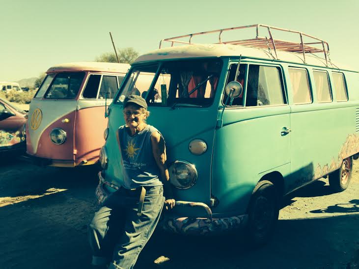 Coffee was already out by the time we get to the Oasis. But a group of residents there tell us about the Library, the Internet Cafe, The Blue Room, and Poverty Flats. They give us a map and we attempt to find a few of the places. Instead we look around and observe the many types of people living there. Some with elaborate RV set-ups, some homey slab living rooms, and some with hut-like structures. We never did find the Library, and since we didn’t want to get lost in the desert, we turn around and decide it’s time to go.