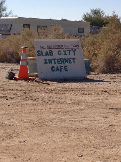 In the very short amount of time at Slab CIty, we met some wonderfully nice people who have created this “town” out of necessity. I respect their pioneer and adventurous spirit. Personally, I think it’s a pretty courageous way to live. I will definitely come back for a weekend, sing songs at the Range, eat breakfast at the Oasis, and check my emails at the Internet Cafe…oh and bring Sandi some wine.