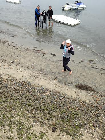 Mistake. Lacy will admit this too, but she had a rough start. And watching her make some accidental back flips, and having trouble getting out of the water did not make me feel at ease about my turn. She finally did get up in the air, and made some great walking on water moves. How did she like it? I will paraphrase Lacy’s reply: