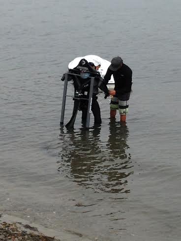 When we signed in at the Jetpack America desk at the Mission Bay Sports Center, we jokingly mentioned that I couldn’t swim. Well, they said that there is a swim test, but it’s not a “swimming” test, but one of making sure you can get back up on the surface. I thought oh sure I can do that. Right.