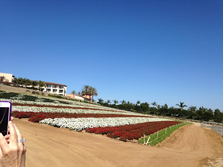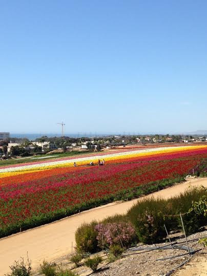 My friend Gigi same thing, gone by, but never into the fields. So off we went during a glorious blue sky filled, light breezy winter day in San Diego (it was still officially winter). One of those days where I really wished I drove a convertible. After a short lunch stop at one of my favorite seafood joints, Pelly’s in Carlsbad, we arrived at the Flower Fields. I will say I think it’s a little sad that now the view of the fields are partially covered by the outlet stores, why must we take away from simple pleasures…