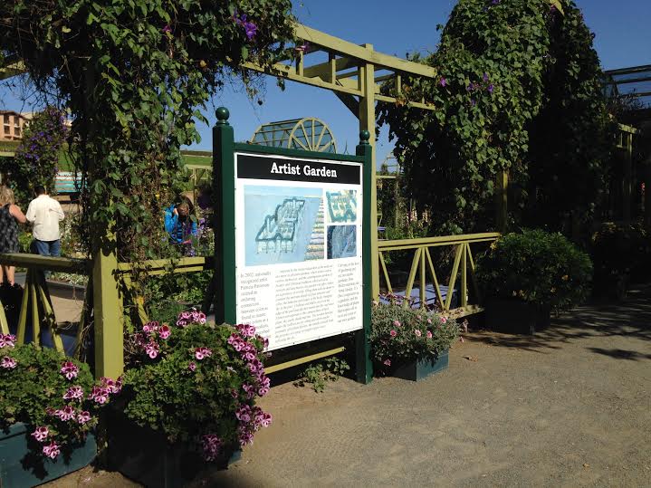 Remember Santa’s Village at Lake Arrowhead? A couple of those structures were moved here as part of the children’s playground. Then there’s the Paul Ecke Poinsettia display, a sweet pea maze (which we successfully completed), mining, and other inspirational gardens. Looking around will provide the gardener in each of us lots of inspiration. Cleverly, there’s an Armstrong Garden Center onsite, where you can also buy cut ranunculus to take home. My souvenir for the day.