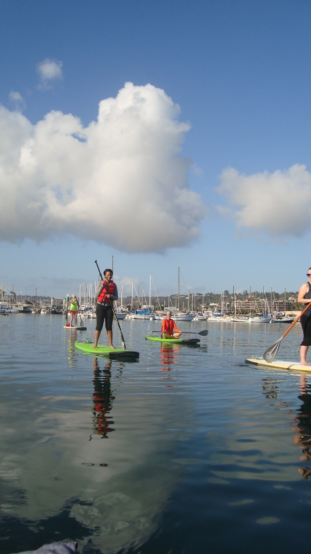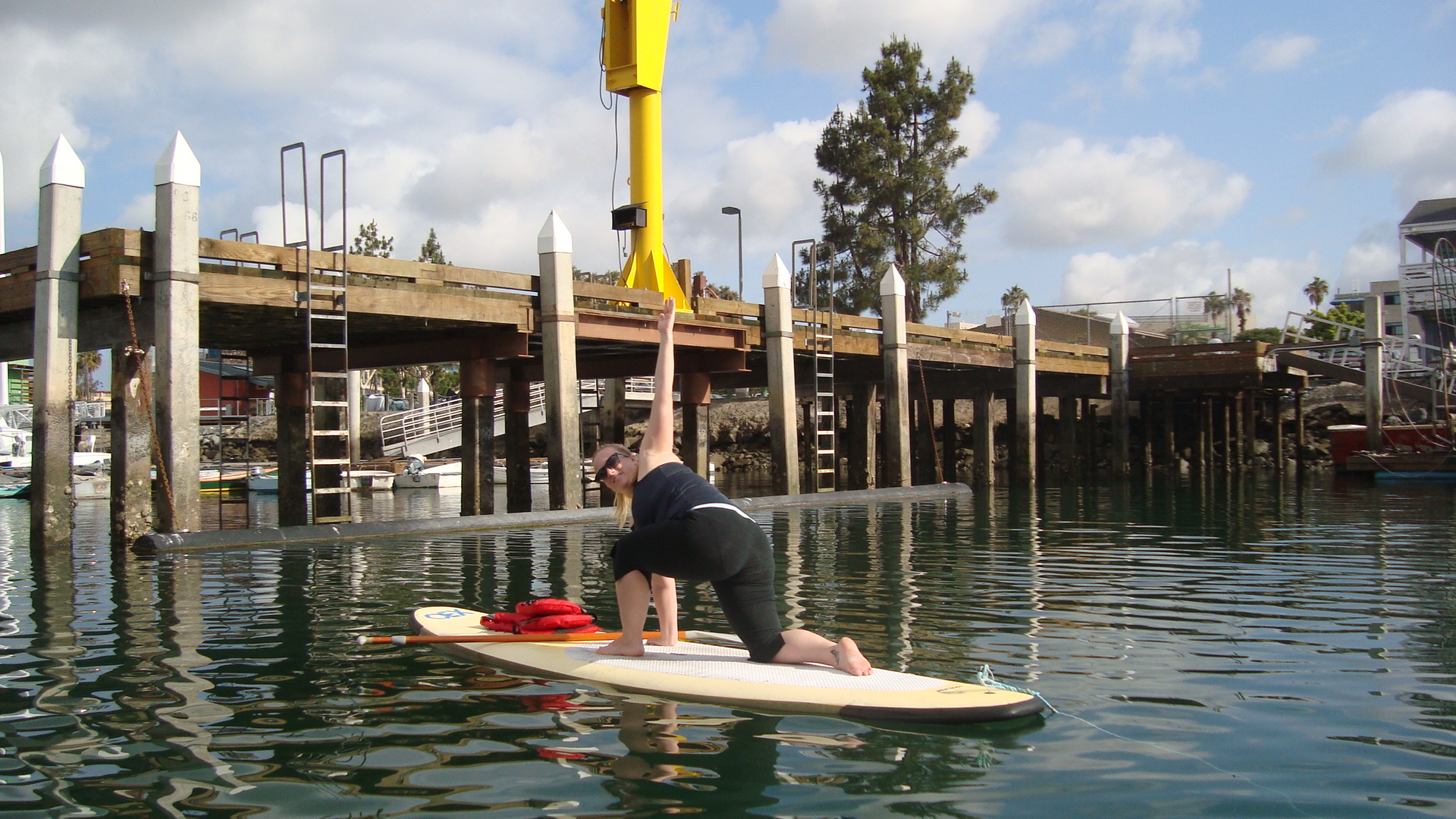 Paddleboard Bliss, www.paddleboardbliss.com, has locations in San Diego, Laguna Beach, and Newport Beach. Classes $39 online booking. Paddleboard rentals, and additional yoga classes available.