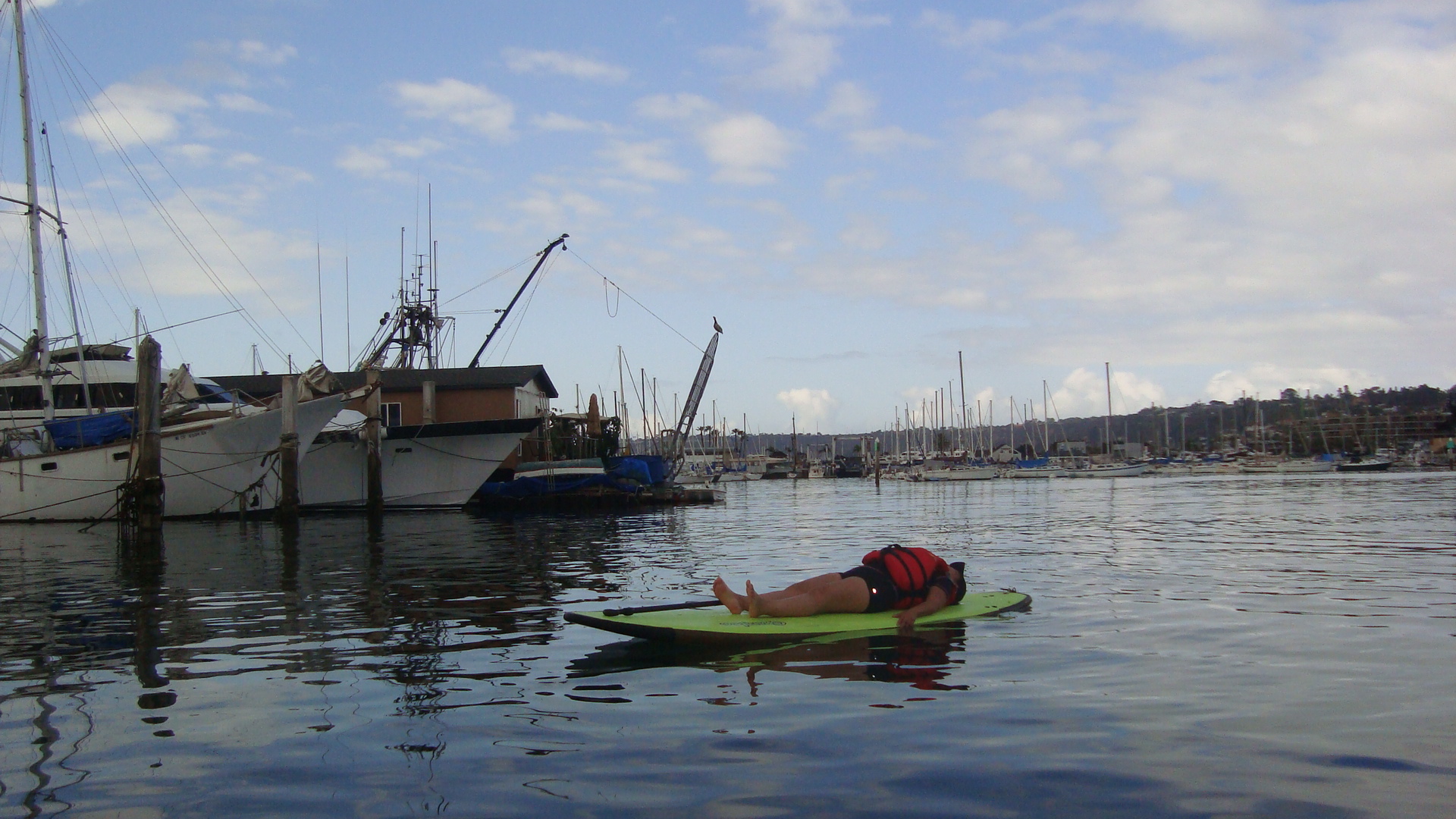 I lay down upon the board which sways along with the gentle waters of the harbor. I am grateful to be able to relax on such a beautiful blissful morning. I close my eyes, and am kissed by the sun…as I lay there enjoying the sunshine on my face, the board starts to move side to side just a bit more. Is a boat motoring by? Ugh, I’m starting to feel a little queasy…am I going to get seasick on the paddleboard? I am so lame.