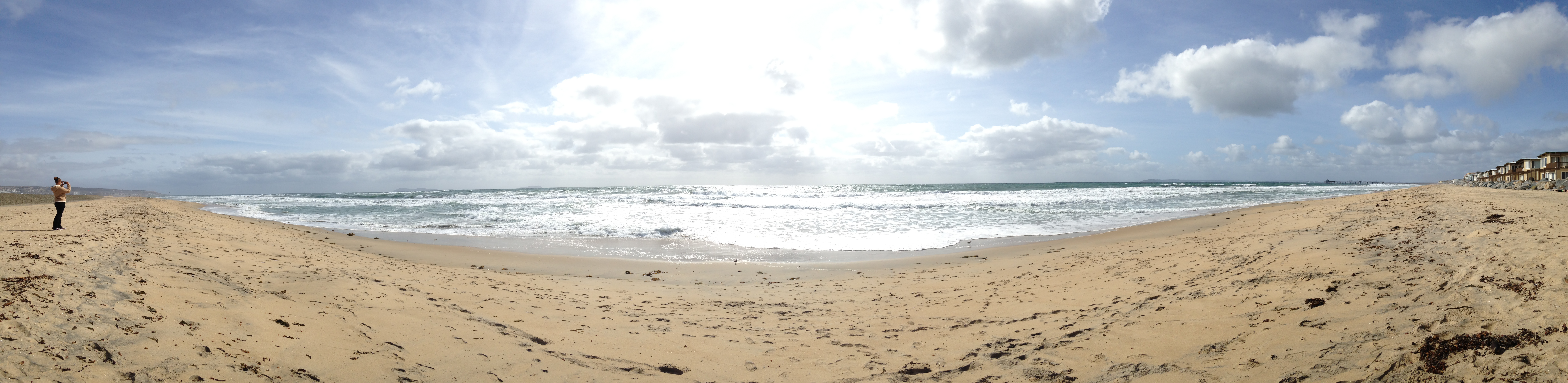 After enjoying the beauty of the still, green marsh lands, we take a few steps over the sand hill to glimpse the restless, blue ocean. What a contrast of scenery just a few steps apart! I envy those who stay here and who can walk from one end of their home to the other and be enveloped in two different moods. (Note to self: check into summer rental rates.) I’m surprised by the solitude that one can find at this stretch of beach. There is only one other person here, and she too looks like a quick visitor. Mexico to the south, Coronado to the north. No wonder the ocean feels torn apart. Do the currents feel the tug of land borders?