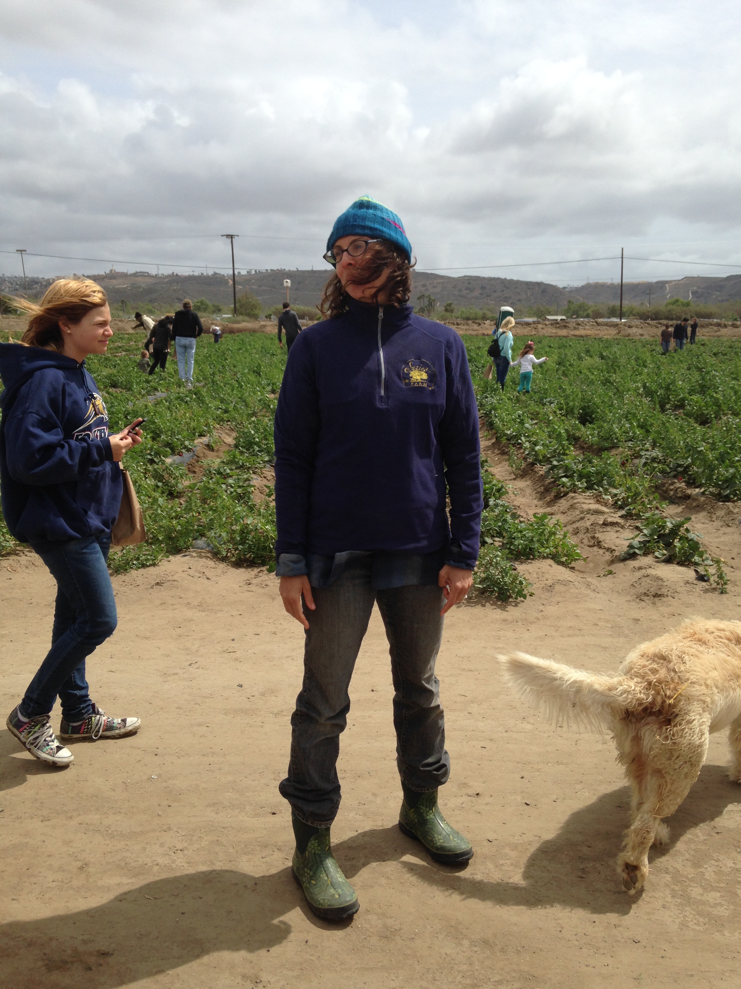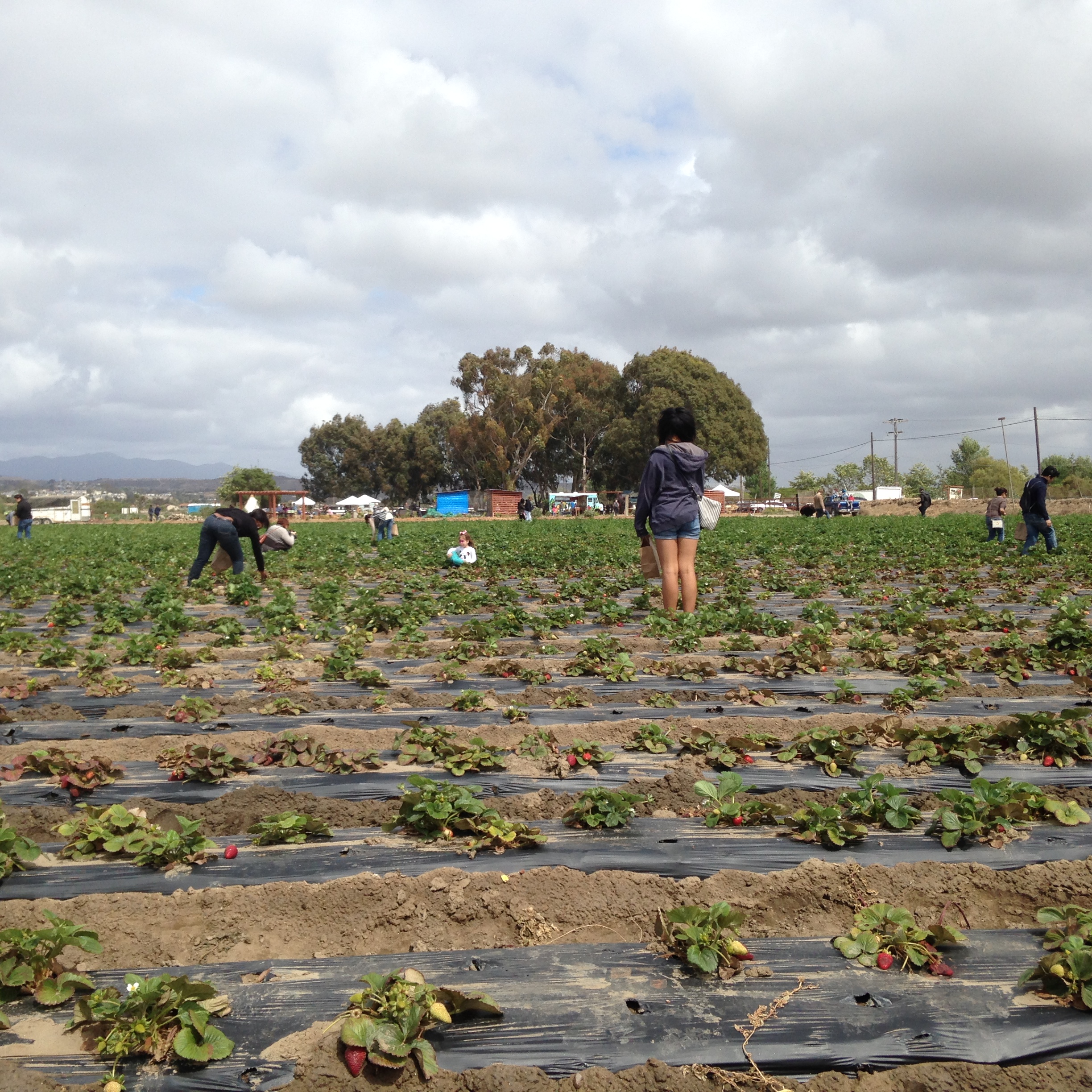 Now, Gigi has this thing about accidentally ending up in Mexico, so we make sure not to pass the exit prior to Dairy Mart Road (the last before the border), which is Tocayo. After passing a residential neighborhood, we turn down Hollister and to the left we see the farm. The farm is quite expansive, as over the years it has grown to 140 acres, and is the only organic farm in the city of San Diego. We can tell there is quite a crowd gathered, which has a festival feel with the food trucks, music, vendors, children’s activities, and the farm stand. Plus, of course, strawberry picking.
