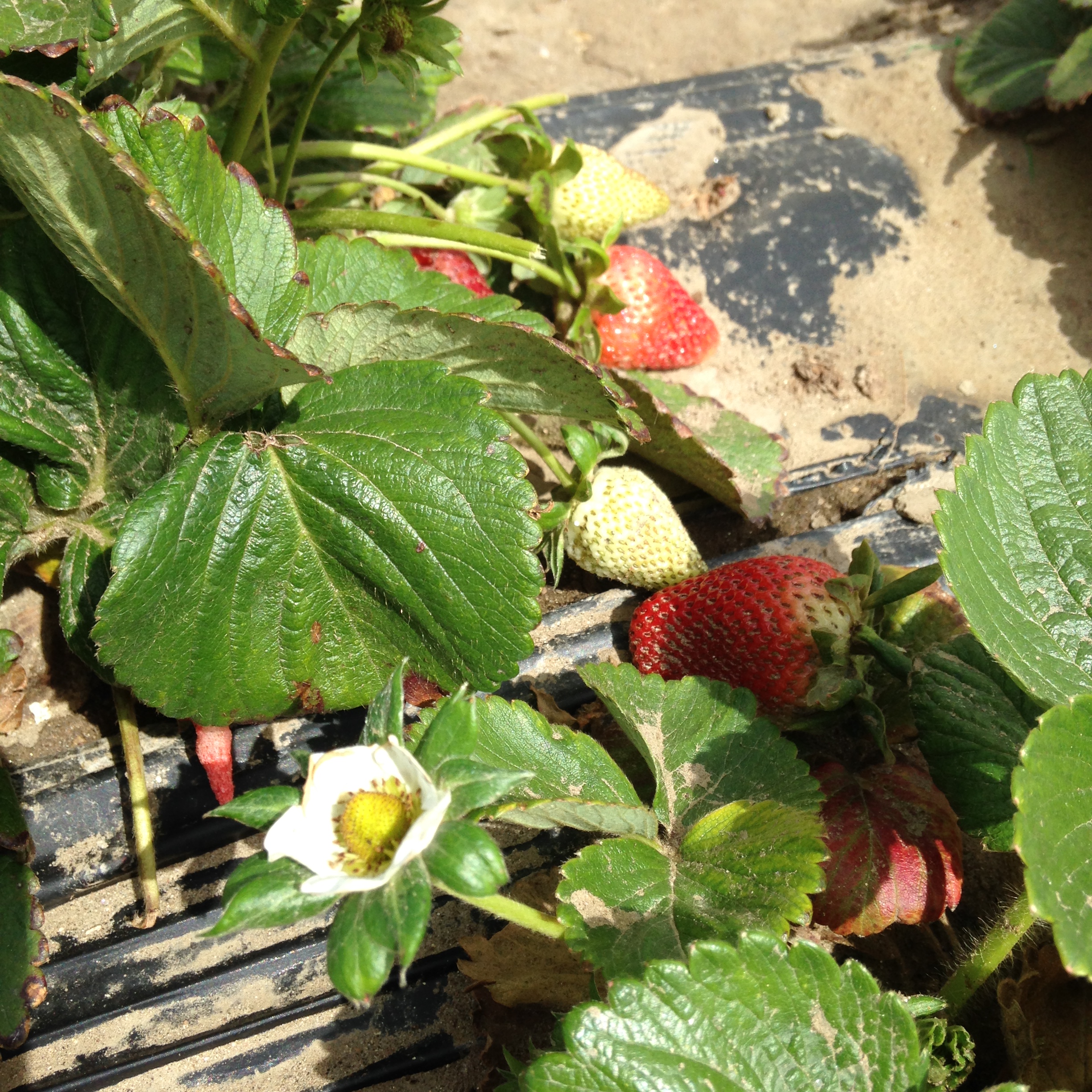 We start to look for our own strawberries to pick and head back to the furthest row, and walk towards the middle. At first I thought we got here too late, most have been picked over, but there was an abundance of berries. It becomes somewhat of a game, trying to find the ripe berries, some hidden under leaves which you don’t notice until you turn a different angle, bending down to get another view. We find plenty to fill our brown paper bags. Isn’t it funny how sometimes you search and search for something, and it’s right below your nose, you just didn’t happen to look at it the right way the first time.
