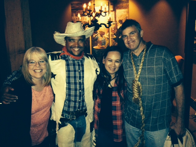 The actual “murders” happen early on in the evening, and you spend the time between dinner courses going around asking the other characters questions. Some played their roles really well, while others had the I can’t believe my wife dragged me here look. Many of the guests also dressed up in cowboy hats, and period looking dresses with a feather boa here and there. I grabbed my red flannel shirt that I wore to my high school Sadie Hawkins dance. Yes, I still have it, it’s sentimental…who did I go with?
