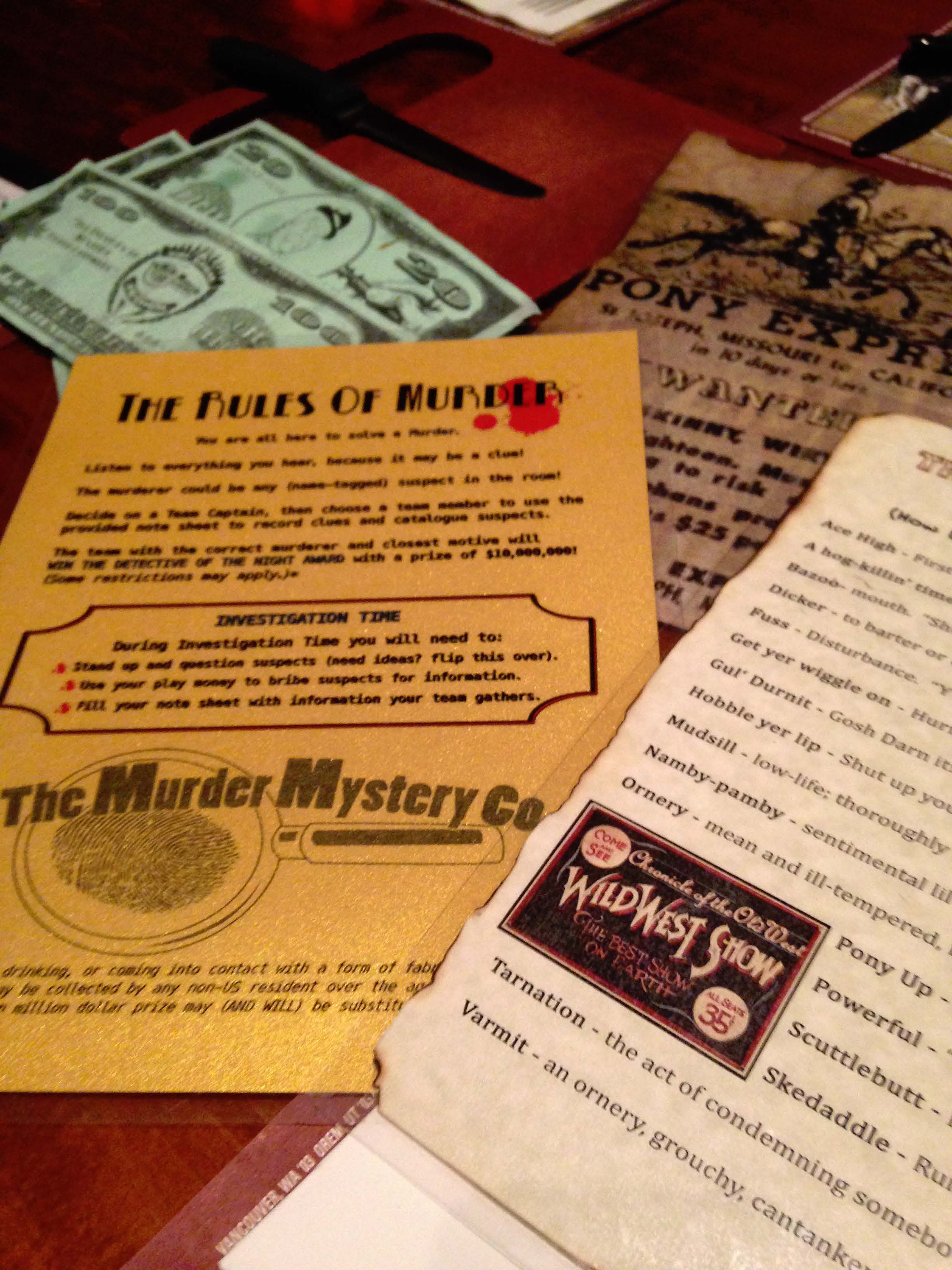 Those were the questions we had to answer one cool night during The Murder Mystery Company’s “Wanted Dead or Alive” mystery dinner show at The Old Spaghetti Factory. Going to a crime solving dinner show was on my 50 Weeks to 50 list, something I had never done before, plus I bought a Groupon. You know how I love those Groupons, and it was one that I would actually use before the expiration date. This time I took my friend Marie, who also had never been to a mystery dinner. She deserved a night out after working a long and grueling tax season.