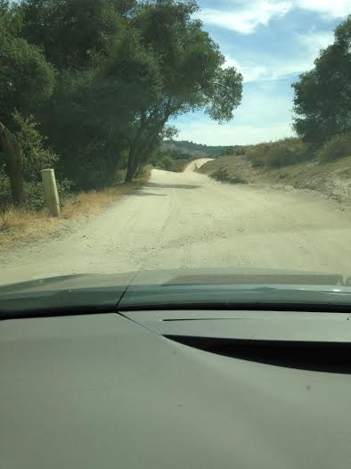 After driving this windy road, thankfully we all kept our stomach contents intact, we get to a main road and soon pass the Yellow Deli. We turn right onto a dirt road, and as we start to drive it I’m thinking “thank goodness my lease is up next month!” A mile and a half later of driving up and down short hills, passing through tree groves, we arrive at the entrance to the farm.