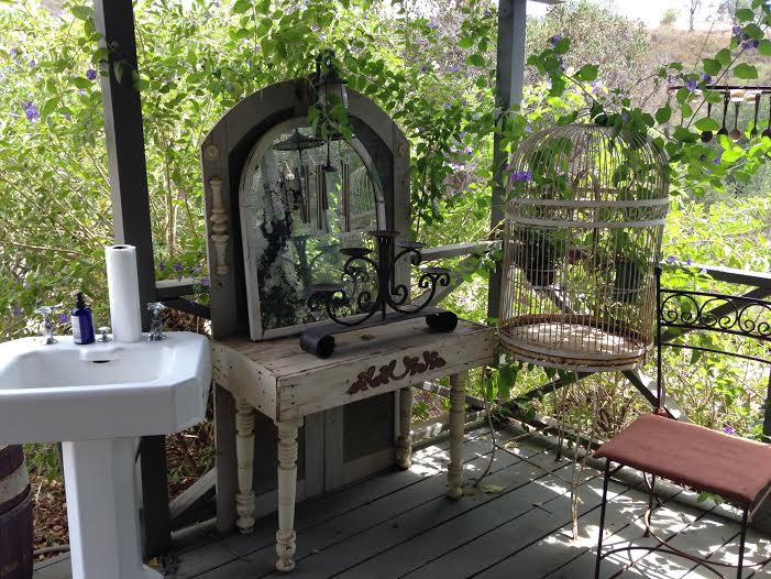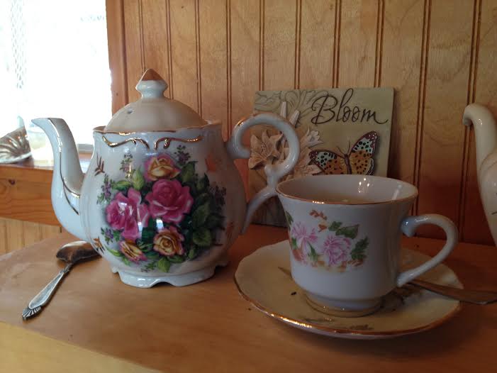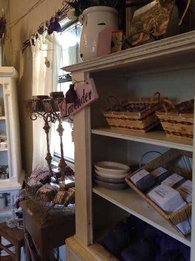 We pass the welcoming gate and you can immediately sense a feeling of calm. Quirky plant displays and repurposed furniture greet us. First thing we do — walk into the gift shop. Everything lavenderish you can think of, they’ve got. Oils, lotions, bath products, teas, candles, lavender. I try to sample the oil and accidently pour way too much on my hands — Sharon, do you need some oil? We leisurely look at all the products, and after a taste sampling — or two, or was it three — amongst us we take home a variety of goods (tea, lemonade, scone mix, sachets, caramel sauce, jelly, and of course, lavender sprigs).