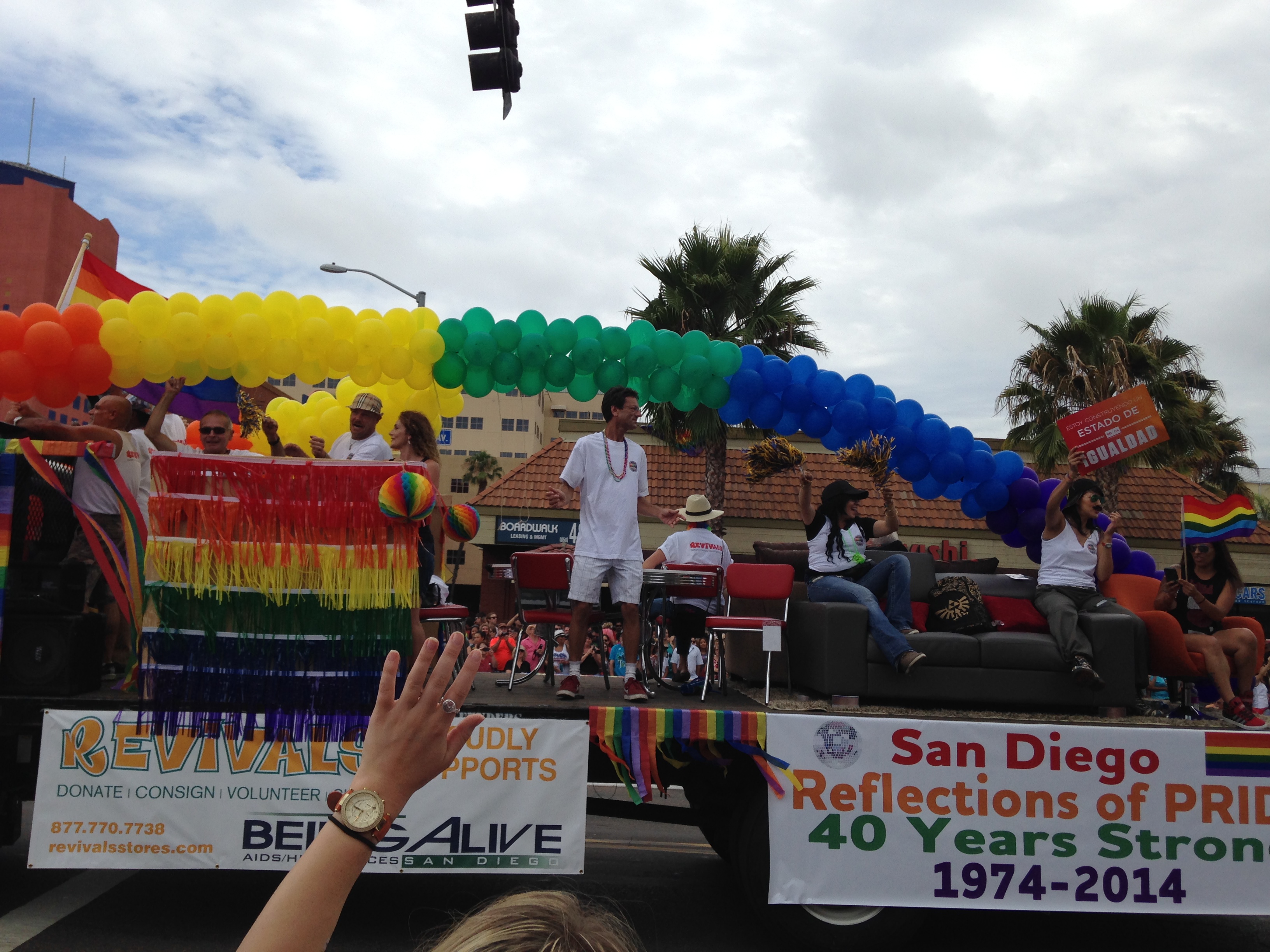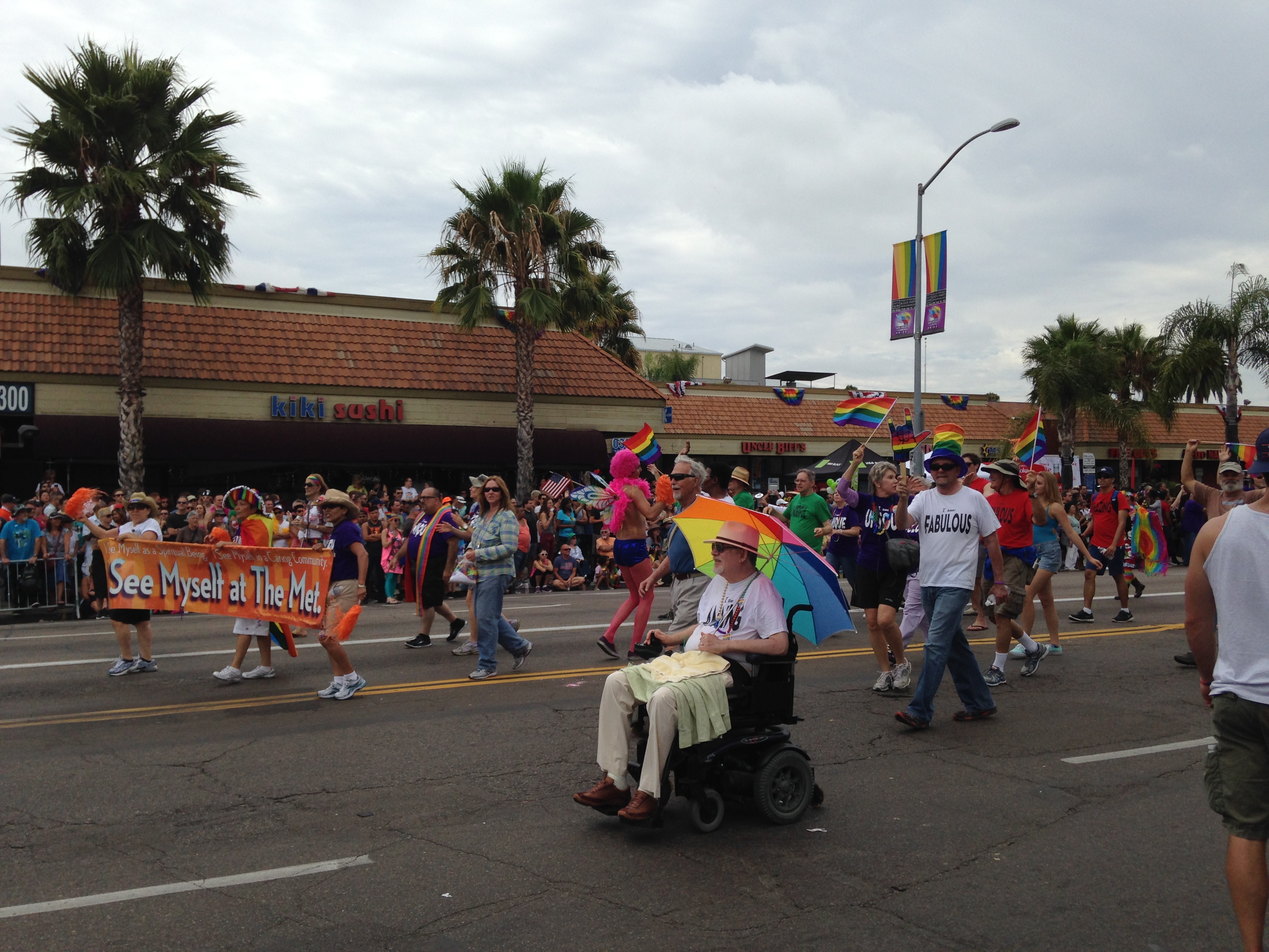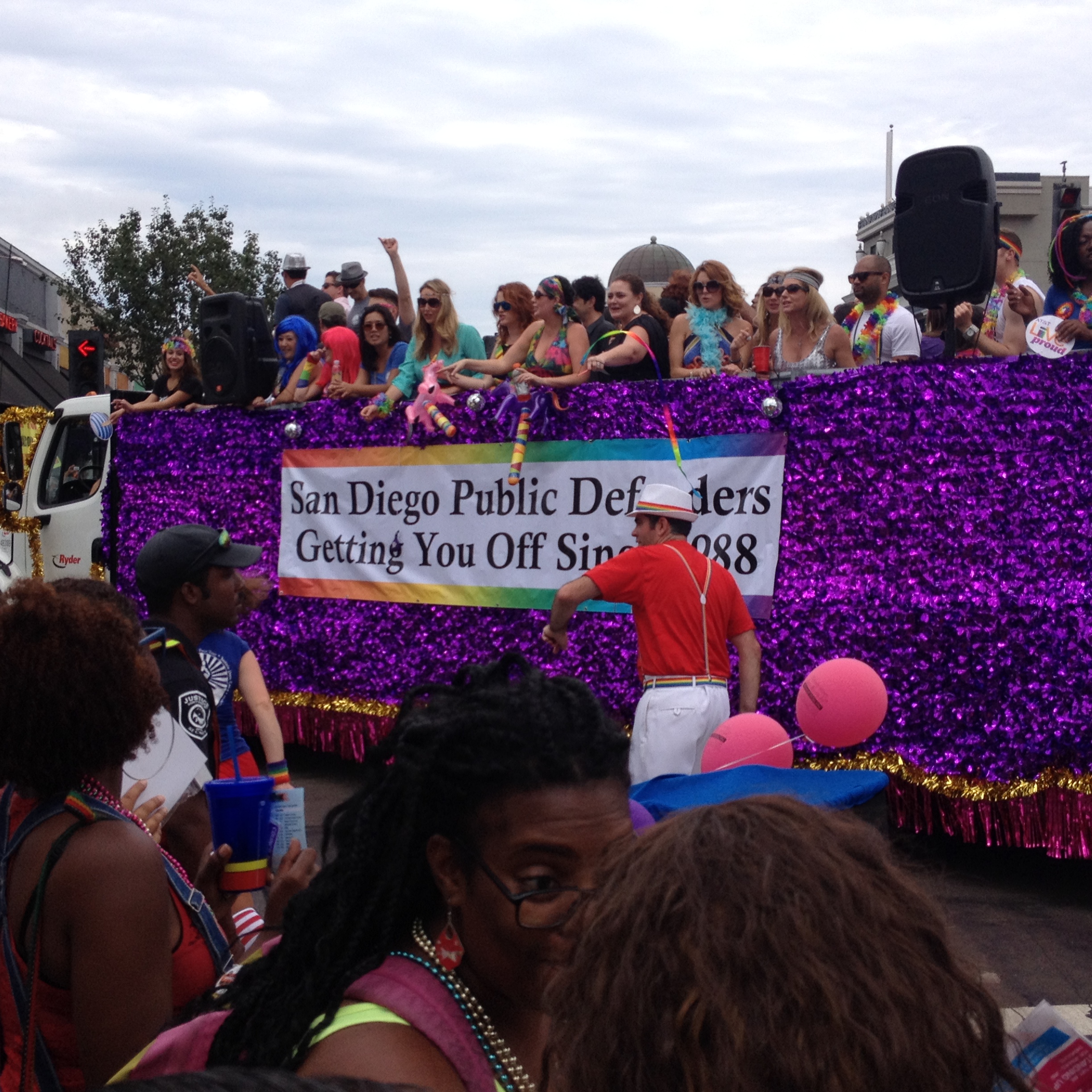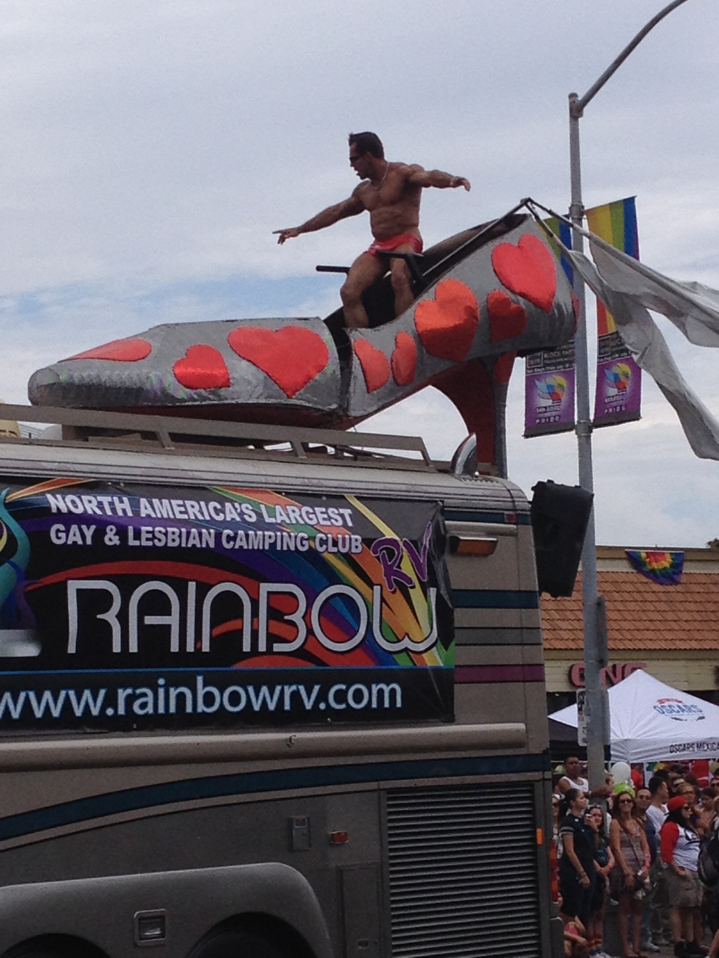 Once the parade started with a leather clad bike club leading the way, there came lots and lots and lots of participating groups. Pretty much every local politician was there, many legal associations, churches, banks, medical groups, nightclubs, radio stations, and of course, all the LGBT associated groups. I was having fun just being there since I haven’t watched a parade since…I can’t even remember, probably when I was a little girl. (I’ve always wanted to watch the Rose Parade too, but I have been to the Rose Bowl.)