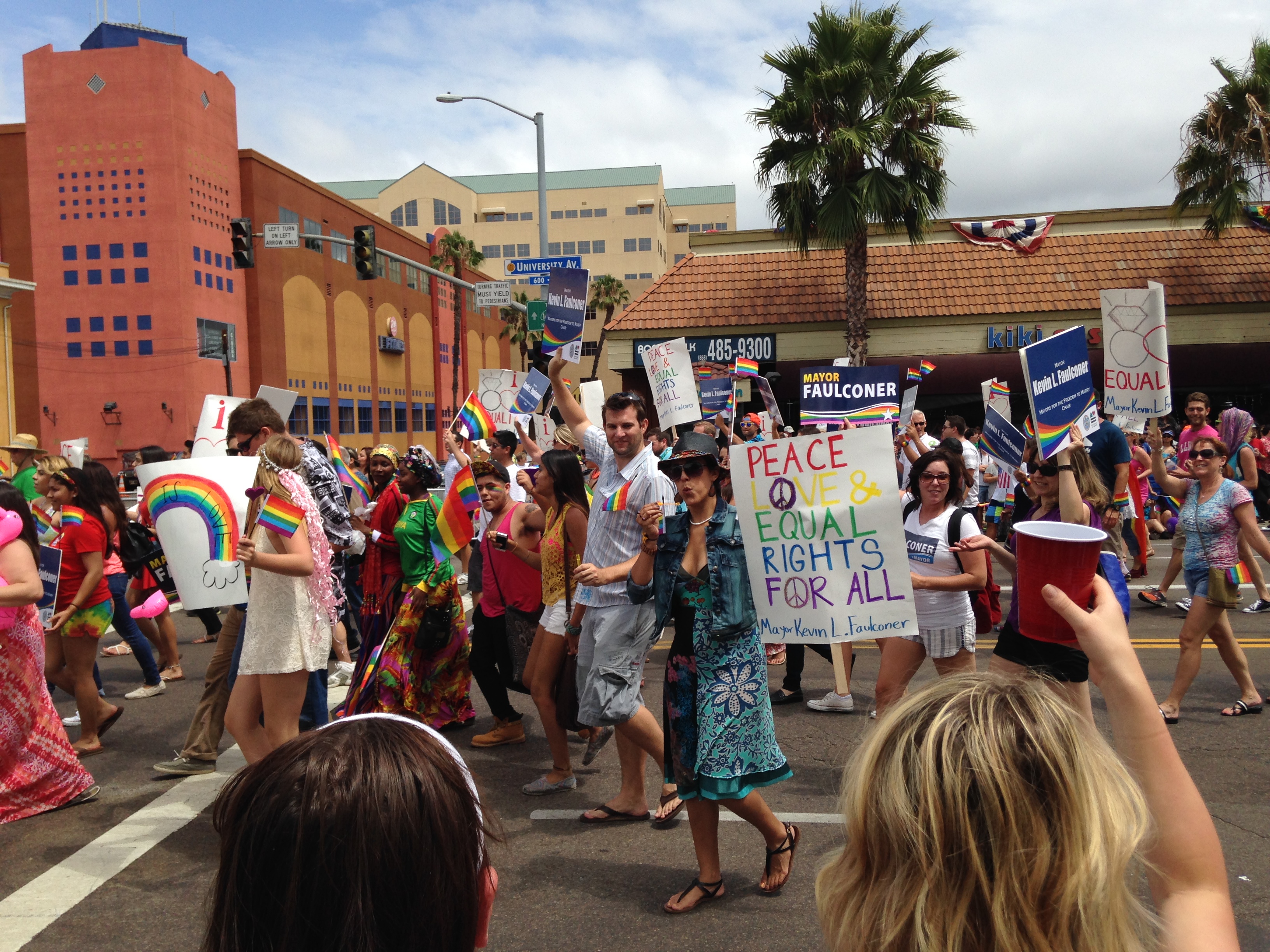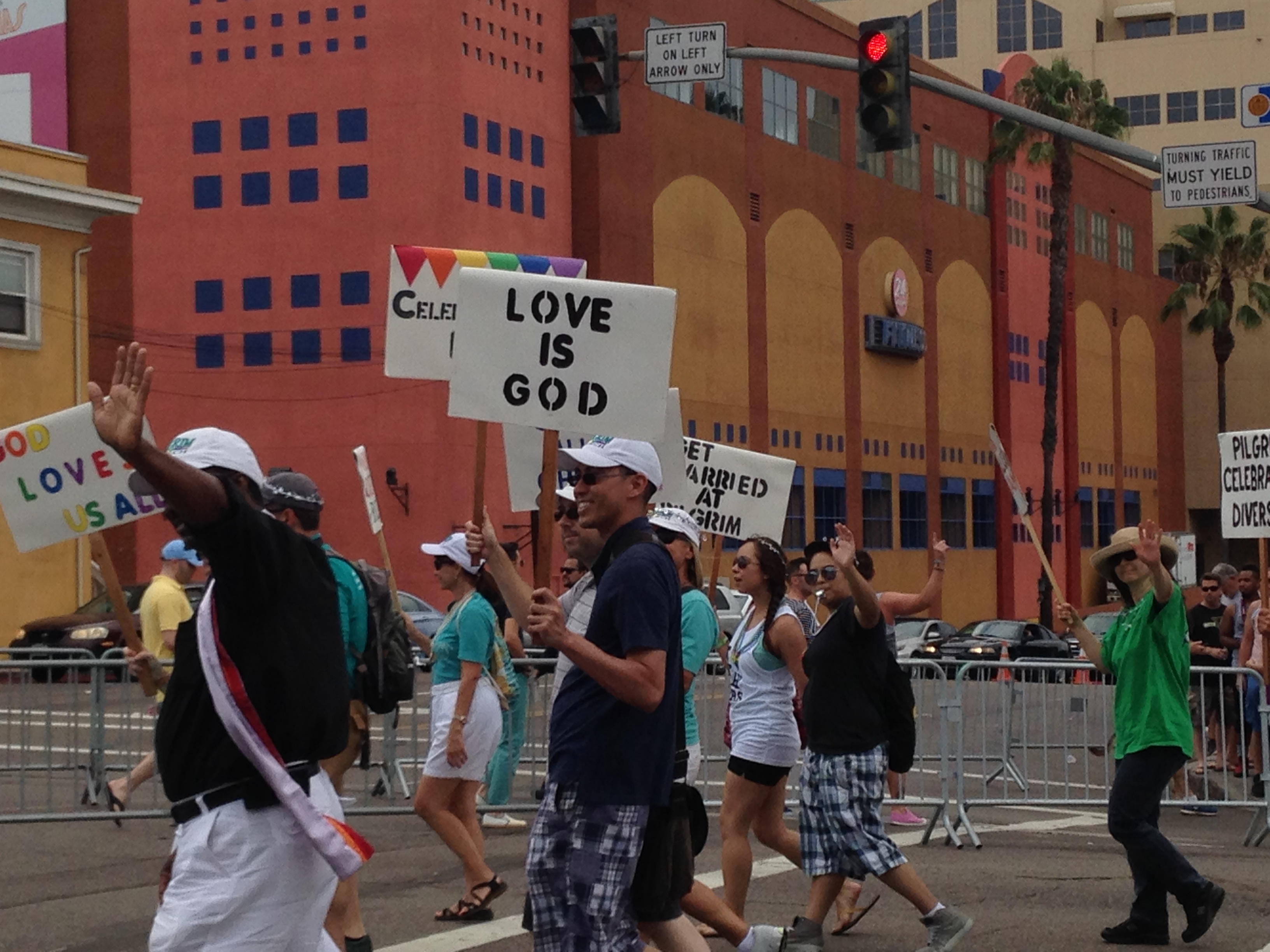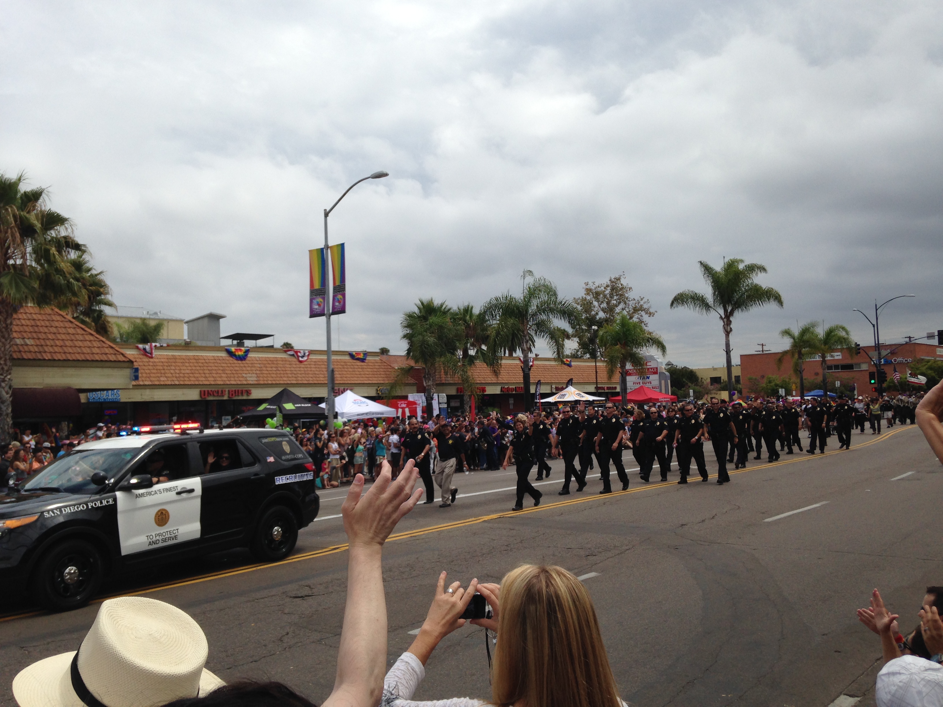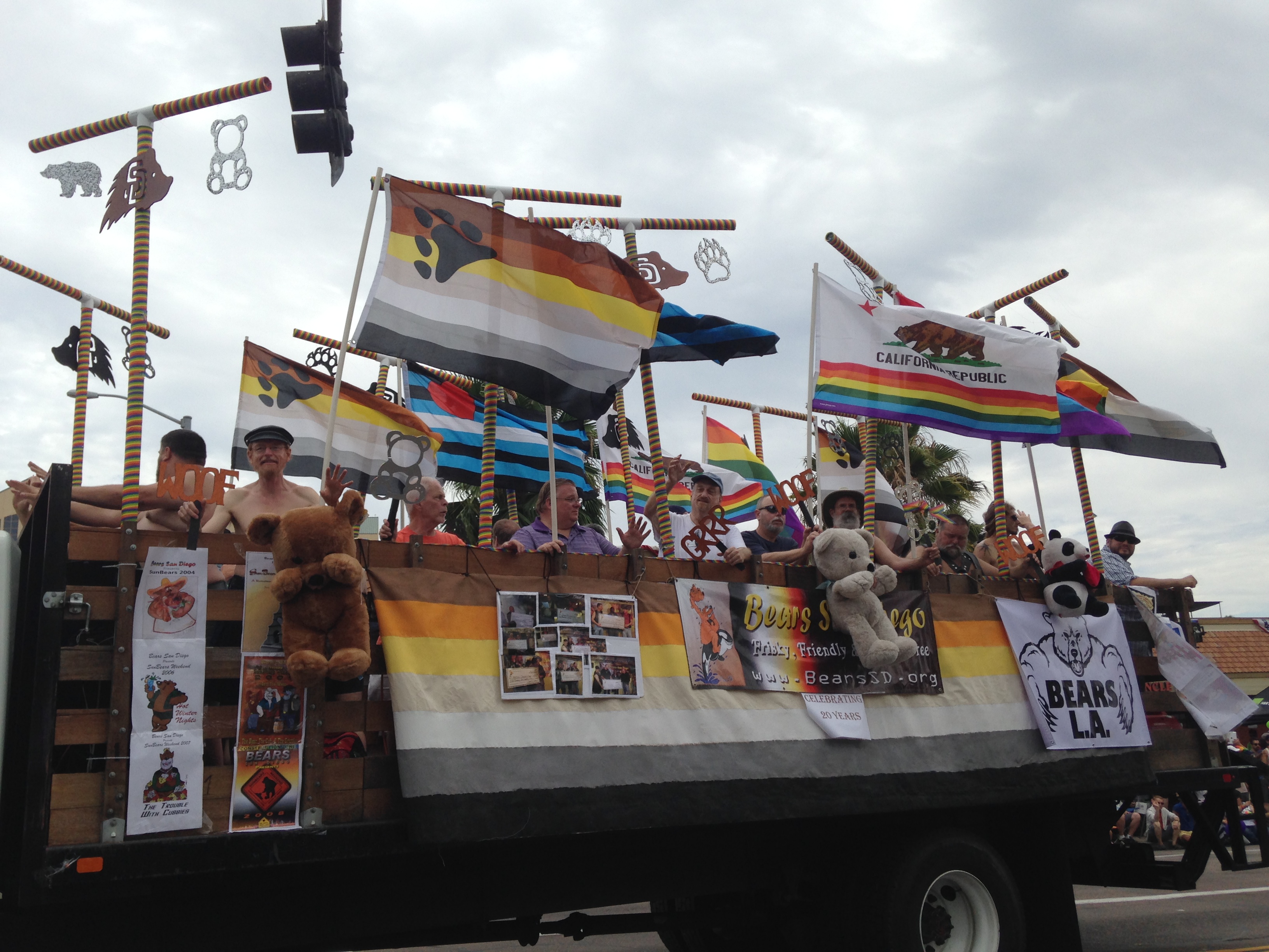 Once the parade started with a leather clad bike club leading the way, there came lots and lots and lots of participating groups. Pretty much every local politician was there, many legal associations, churches, banks, medical groups, nightclubs, radio stations, and of course, all the LGBT associated groups. I was having fun just being there since I haven’t watched a parade since…I can’t even remember, probably when I was a little girl. (I’ve always wanted to watch the Rose Parade too, but I have been to the Rose Bowl.)