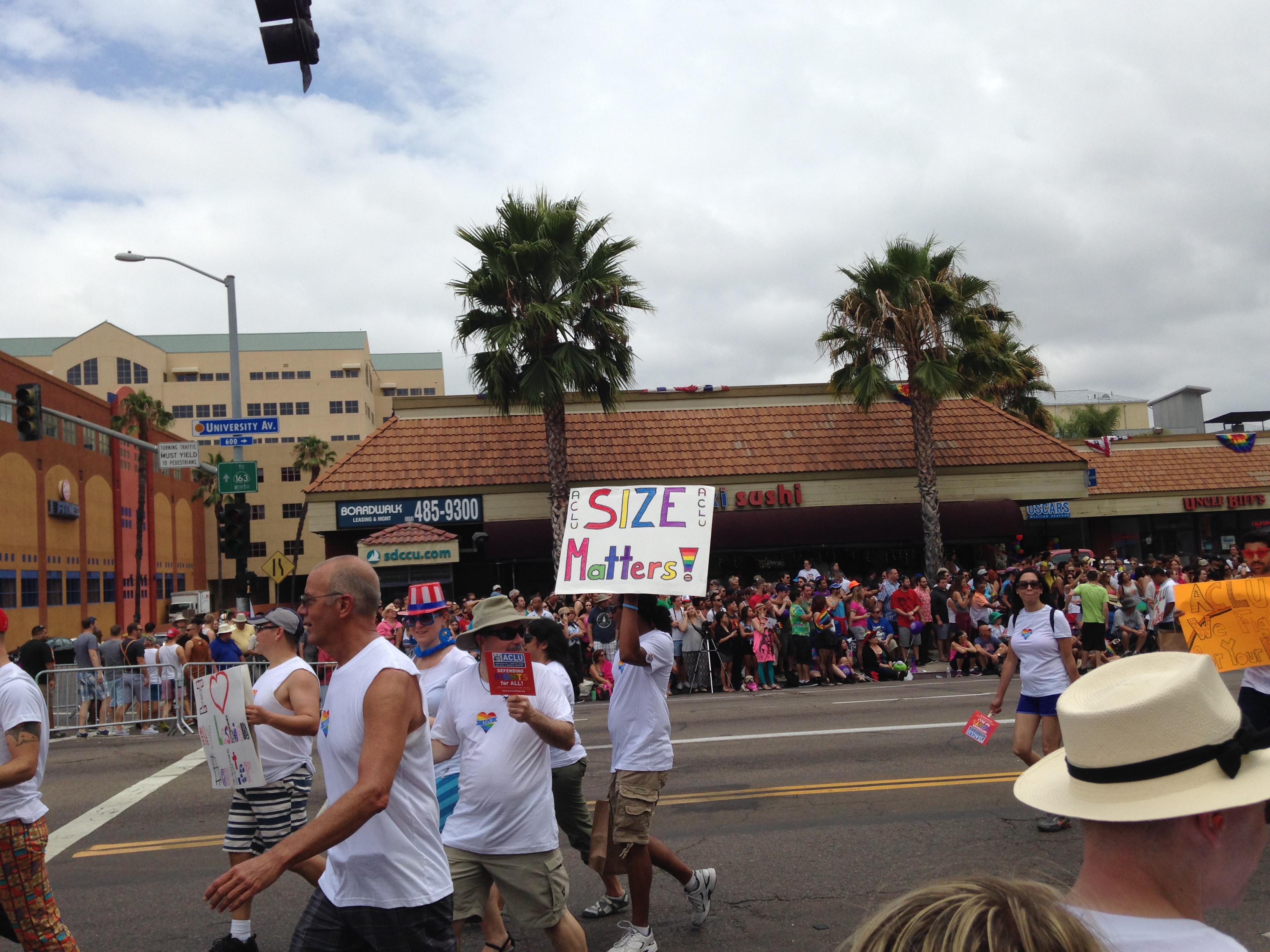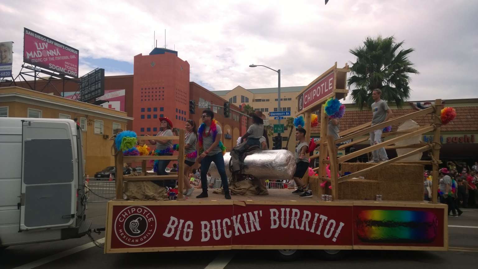 You really have to experience the Parade to truly enjoy it, which is why this blog is mostly pictures because there was so much to see — and there was so much more that I didn’t include, need to edit you know. What was my favorite? So much…all the cute guys (so what if they’re gay, still great eye candy, especially the half naked ones with ripped bodies, is there a gay strip club I can go to?), the foam truck, all the fun giveaways (I was given a bunch of condoms), the Chipotle truck with the giant riding burrito, the costumes, and all the signs expressing love for all (“I love all my children, even the straight ones”, “God loves us all”, and “size matters” — oh wait, well still a great sign).