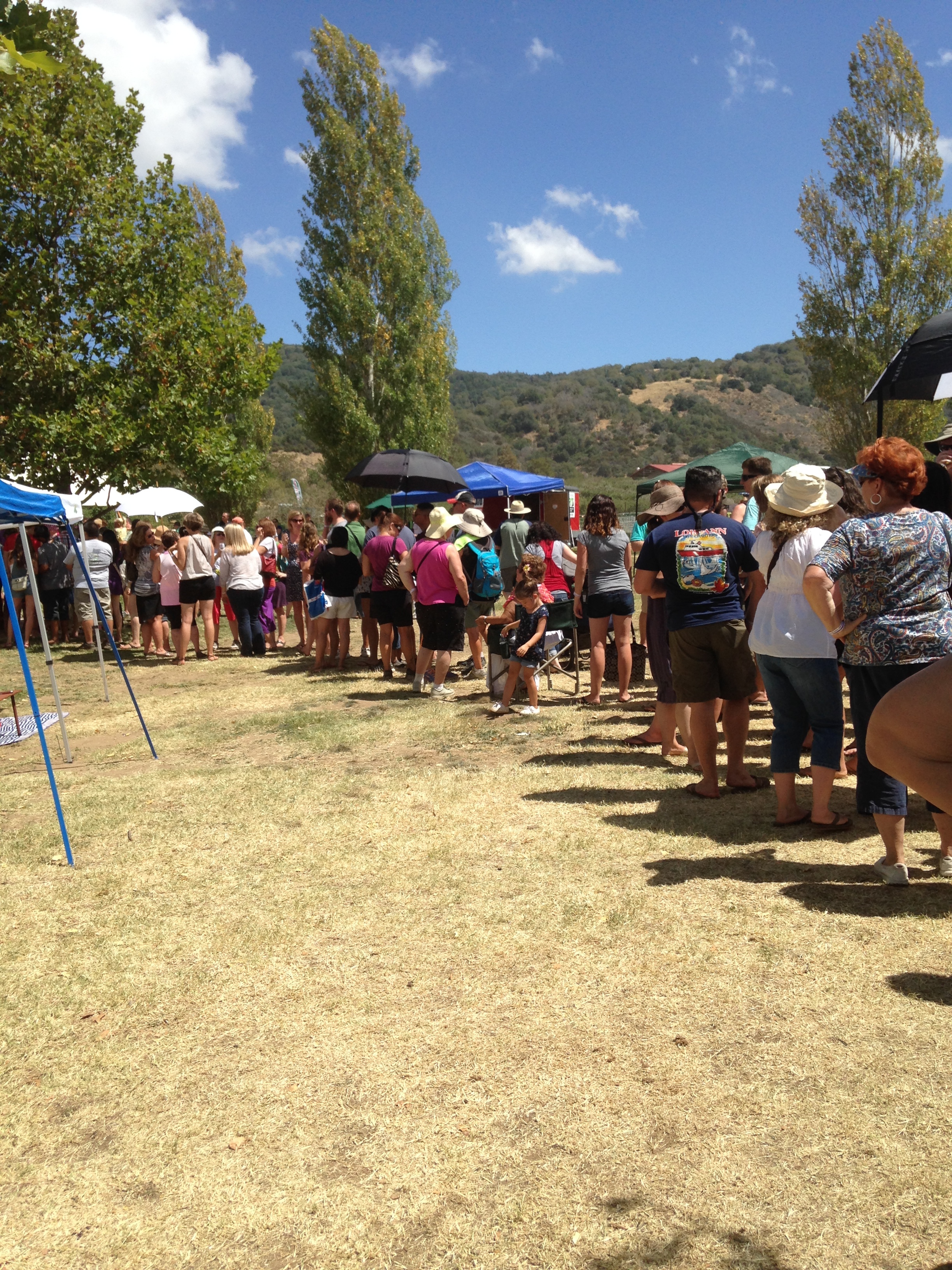 Yes, we are almost there! Hold on, you mean all those people who paid for the $50 VIP tickets get to cut in line whenever they want? Reminds me of the Disneyland Fast Pass. I am ready to strangle someone since I thought we were next, yet it seems all these VIP ticket holders decide to show up right at our moment! Please hurry up and go back to your white tents and appetizer filled tables. We should have paid the extra, but then we wouldn’t have met Marie, Carmella and Sylvia.