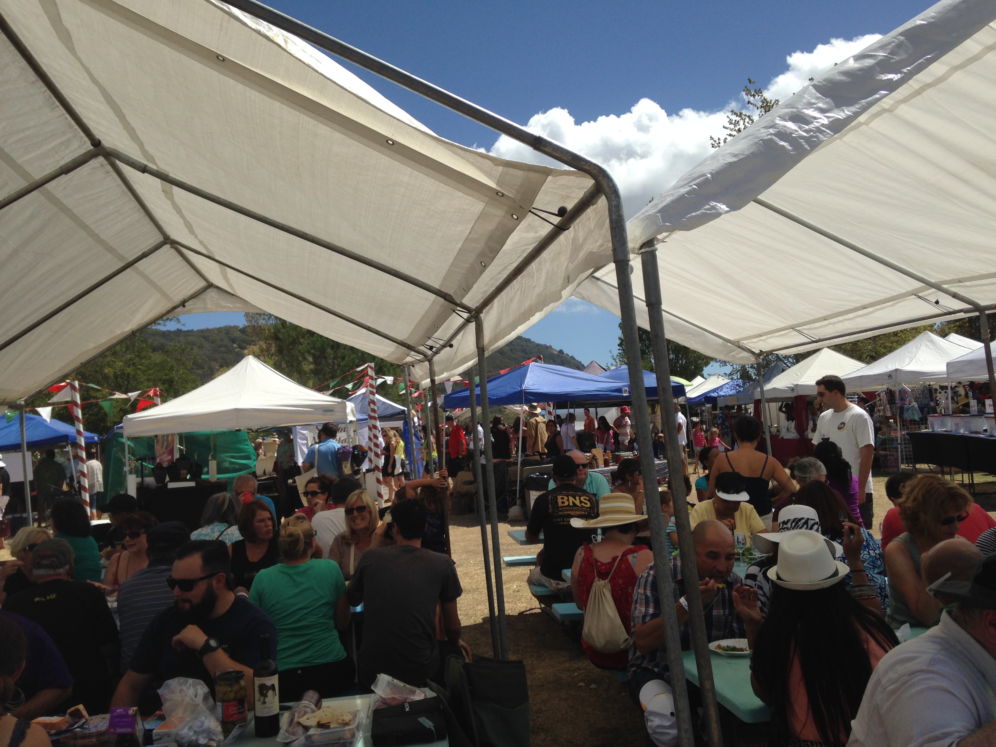 We look around and see all the people that must have done this before. They brought their own canopies, chairs, tables, etc. I jealously feel that they all look so comfortable…and cool. We were sweltering already. What the heck, all the wine tasting booths were surrounding us, what shall we try first? But because of the heat, and knowing too much wine will make us loopy, we decide to settle for a glass of some very tasty Sangria. Hey, I’m the driver, so I need to be responsible and take care of my gals.