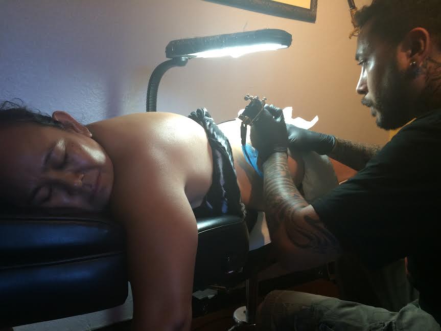 I’ve been in physical pain lately, so what’s a little more pain? I had previously scheduled an appointment with visiting tattoo artist Soane Tavataina Paninia, who is French Polynesian and now makes his home in Rapa Nui on Easter Island. It was his last week in San Diego inking at the Island TAT Tattoo Shop in Lemon Grove, so I was determined to keep my appointment and make sure my tattoo would be something special.