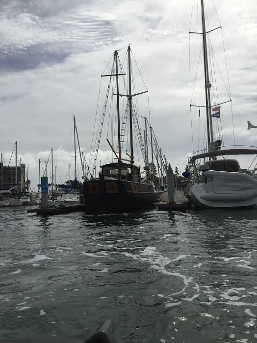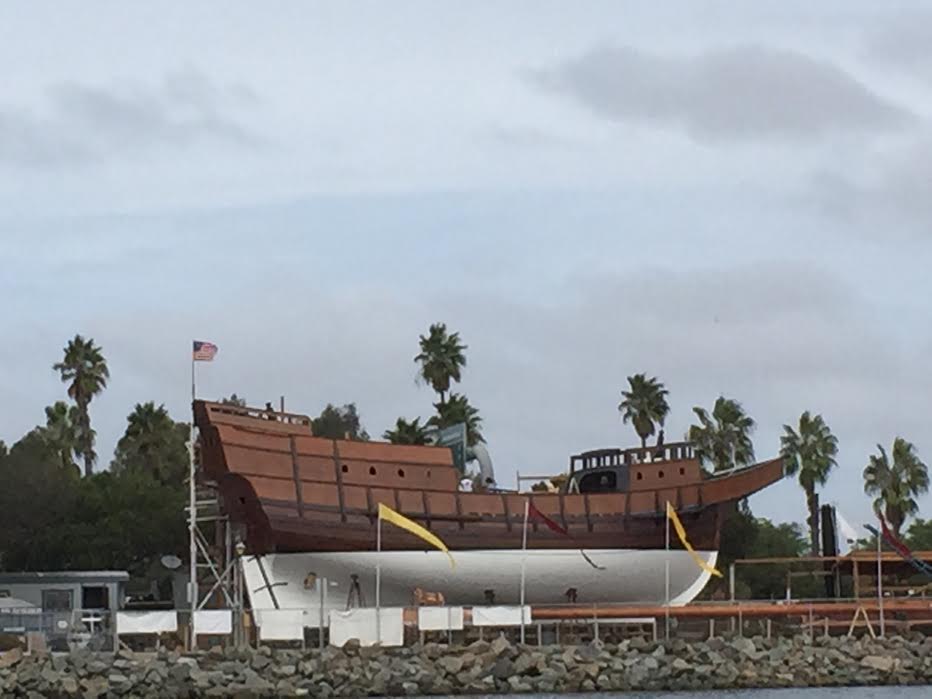 At the end of the channel we see the San Salvador replica build site at Spanish Landing, then we turn a corner and our guide points out the U.S. Navy Marine Mammal Program training facility — basically dolphins are trained to protect the harbor, recover equipment, and detect mines. I was hoping for a dolphin sighting, but as usual I missed it. We’re still at a slow pace, bobbling out of the no wake zone…here we go, first the guide goes out at full speed ahead, then the two boats in front of us, now us…Richard goes full throttle…woohoo!