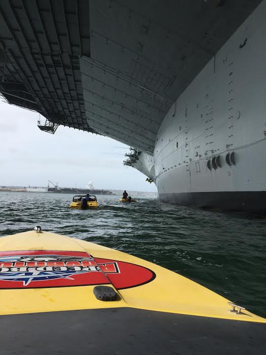 Being from San Diego and seeing plenty of sea lions and visiting the museums many times as a field trip chaperone, can we just keep riding? We do spend most of the time enjoying the waters, especially a long stretch from the opening of the bay below Fort Rosecrans towards the Coronado Bridge. Speeding along like that, it really was a blast. I loved it when we made air, and held tight for the bumpy return. It brought a smile to my face, plus a salty complexion.