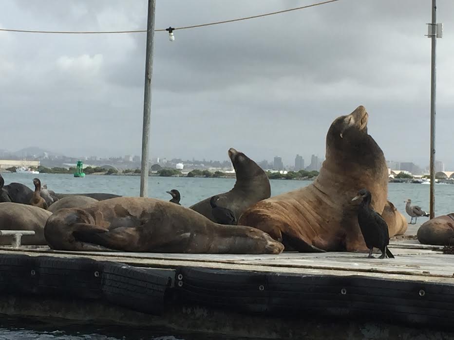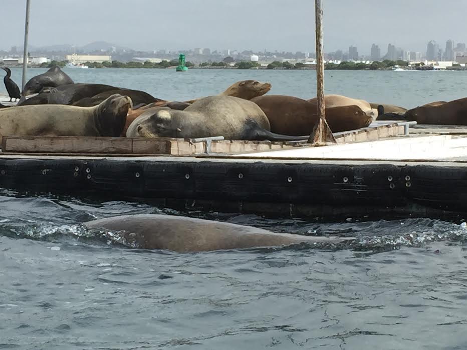 - Point Loma area where the bait barges become resting spots for sea lions and sea gulls, one baby pup looked injured, so sad. We did see a pod of dolphins on the way.