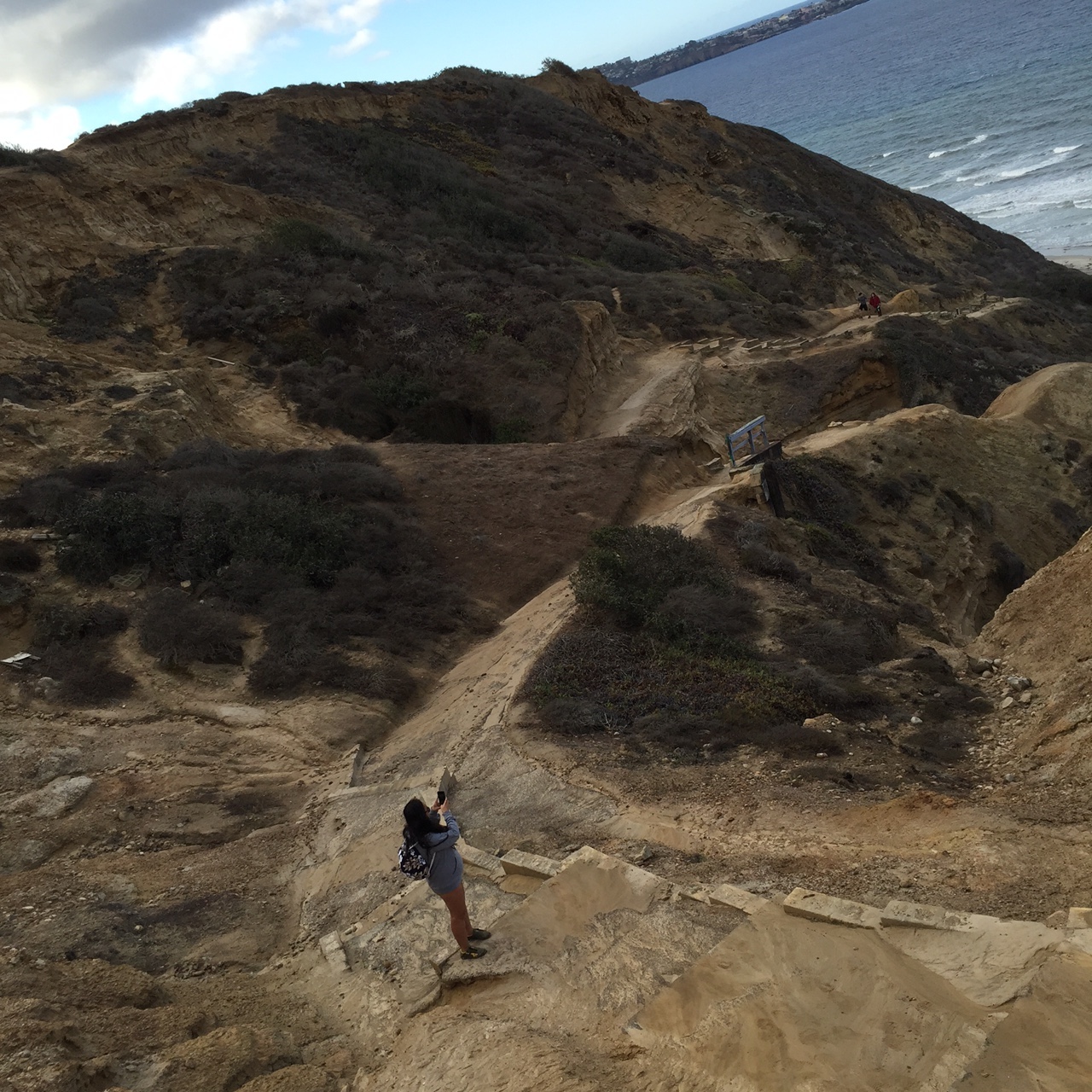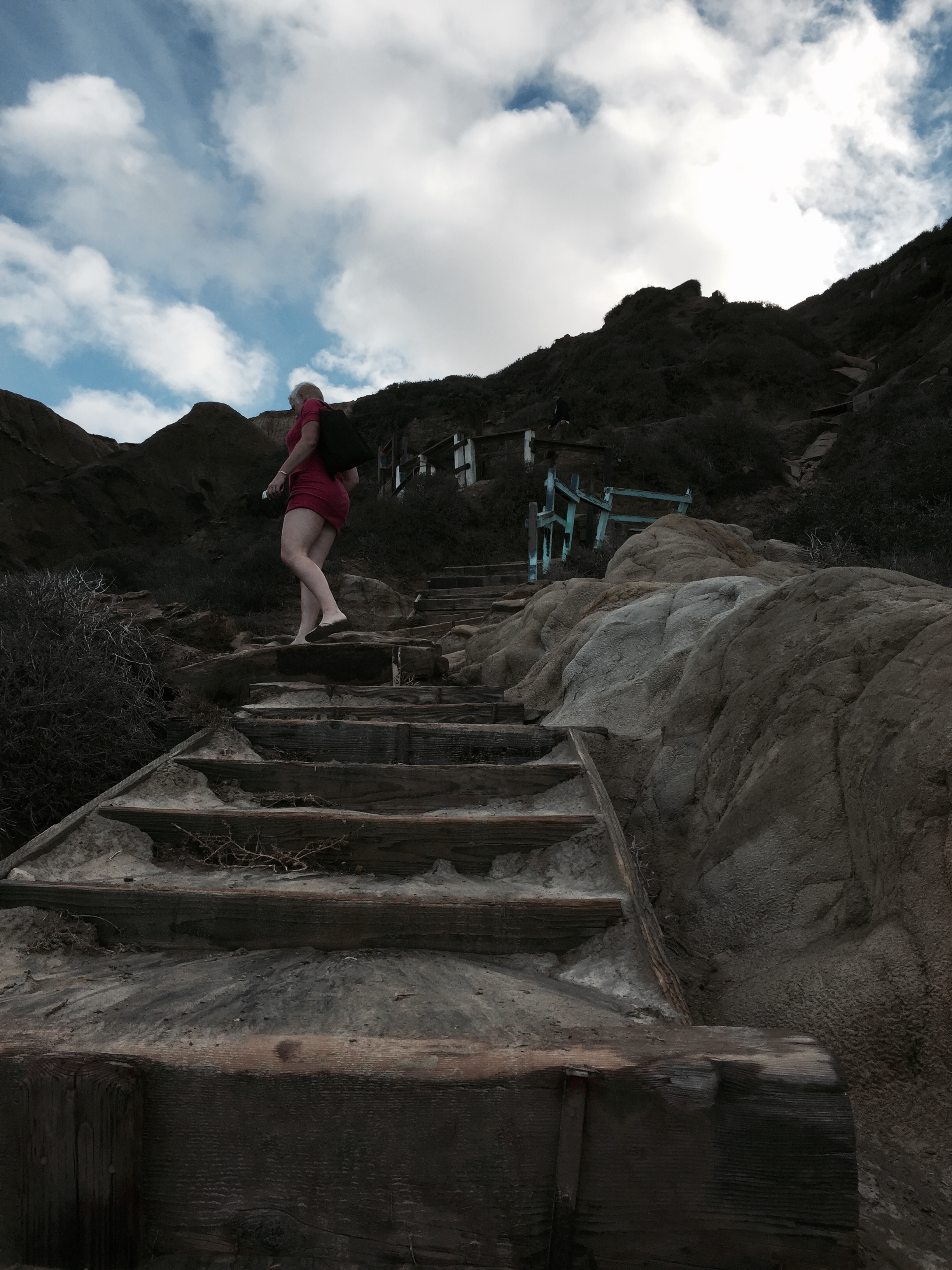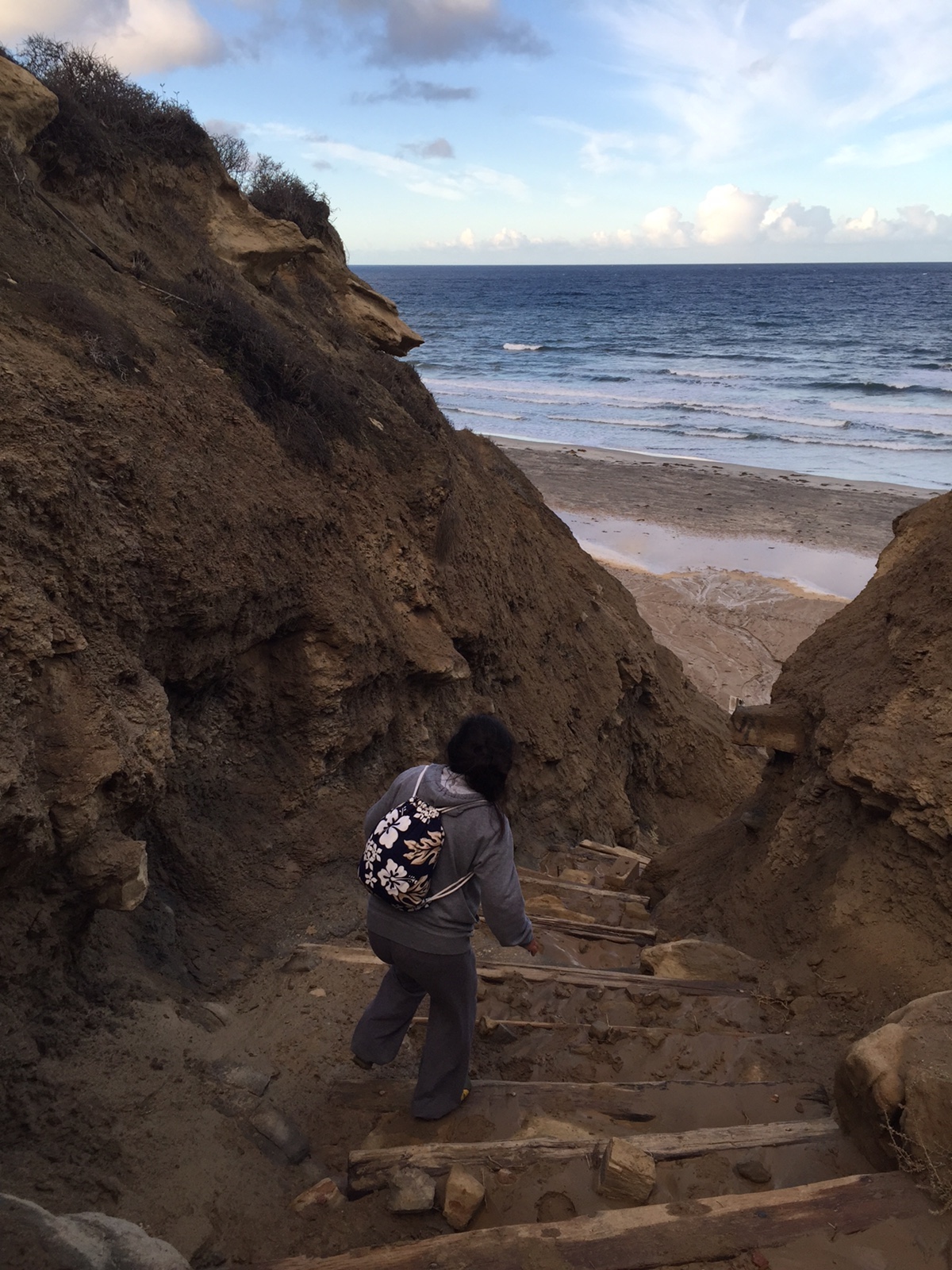 It’s really not that hard of a climb down, but it was muddy from the night before and not regularly maintained, so we had to be careful. I thought for sure that I would slip, sprain an ankle and have to be carried up by Lacy. Am I going to be one of those people that have to be rescued by lifeguards on the taxpayers dime doing something that seems so stupid. How embarrassing? Jemma, why were you going down that trail when it was visibly too muddy? Well, uh, I was planning to run around naked at the beach…that would not have made good publicity.