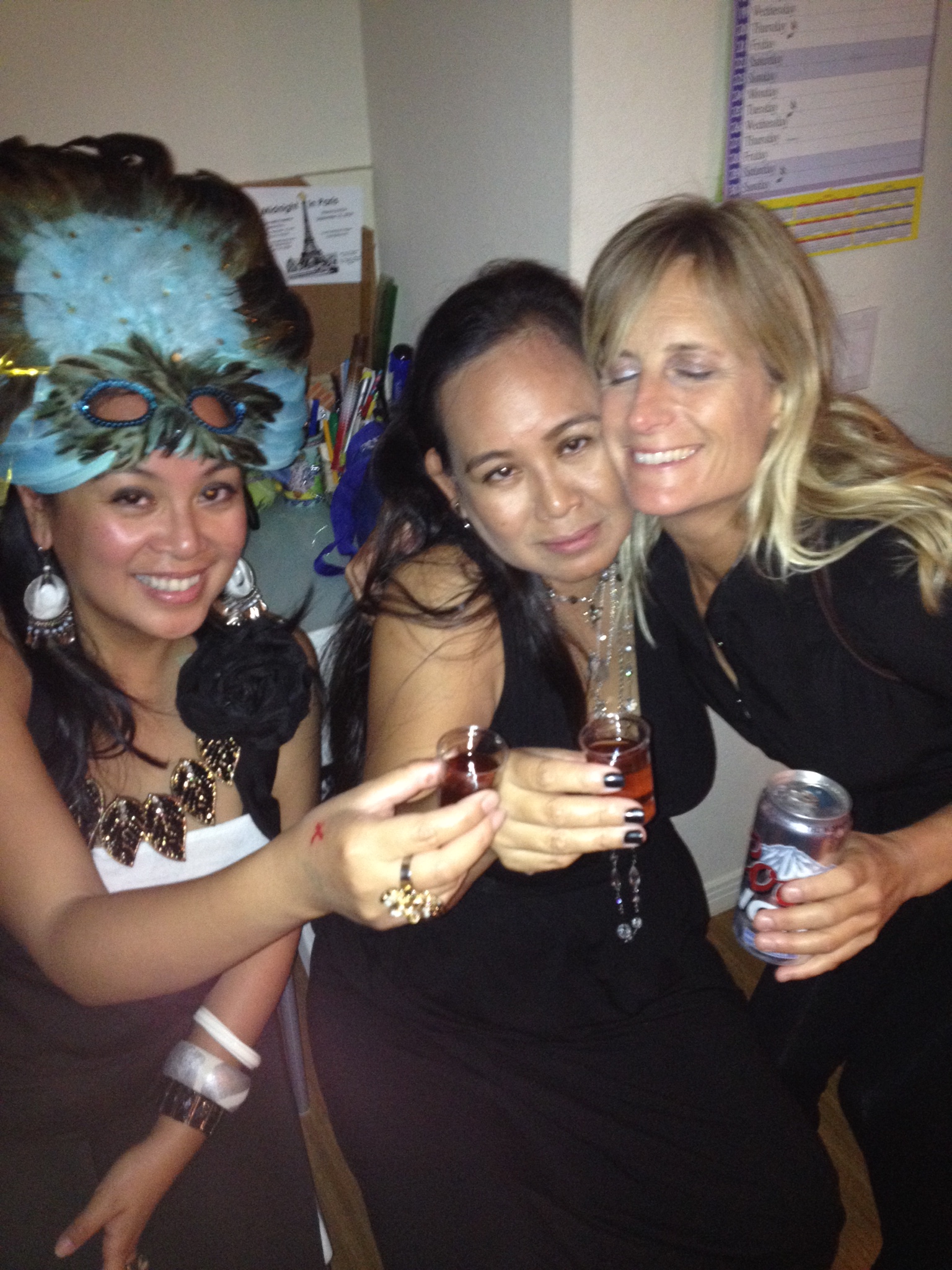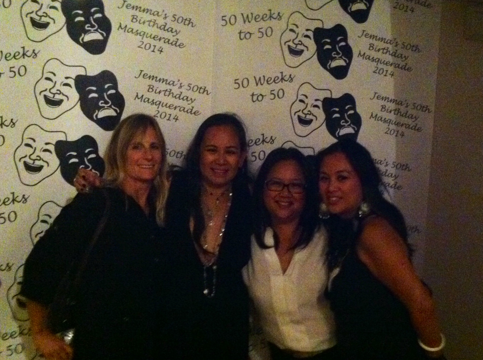 Thanks to so many people (I know I’m gonna forget someone), including: Rosey for taking care of rental tables, chairs and linens; Marie B. and Kim for handling the wonderful decorations – transforming my backyard into a magical backdrop; Gigi for food ordering, and her son Evan for designing the party banner and making the 50 Weeks video (I will have to upload on YouTube); Lisa-Marie for picking up food; Lacy for going shopping with me and lots of clean-up the next morning; Heidi for set-up; Dawn for helping with the wishing tree; Sharon and Marie W. for being there; Chris for coming from the OC; David and my sisters Liza and Roselma for all the kitchen duty and clean up; to my parents Lita and Elmer for creating me; my sons Brad and Grant and their friends for “volunteering”; and to Richard for making the 50 Weeks songlist, helping with everything and doing all the guy stuff. Without everyone’s help, it would not all have come together. It takes a village to produce a spectacular party.